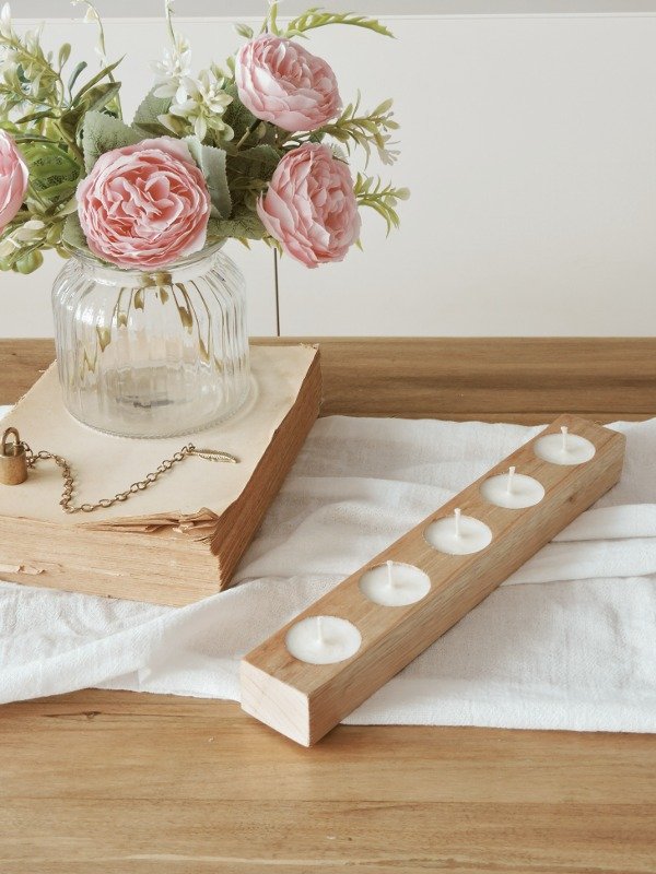 5 velas de soja aromática en recipiente de madera saligna encerado y lustrado